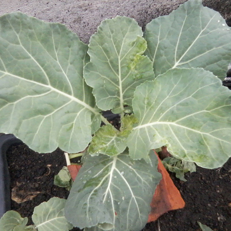 Como cuidados com a planta, corte a ponta do caule principal para que a couve mantenha altura e tamanho adequados para o manuseio e a colheita, além de favorecer o desenvolvimento dos brotos laterais. Como medida sanitária, retire folhas descoloridas, murchas ou com sinais de ataques de pragas.